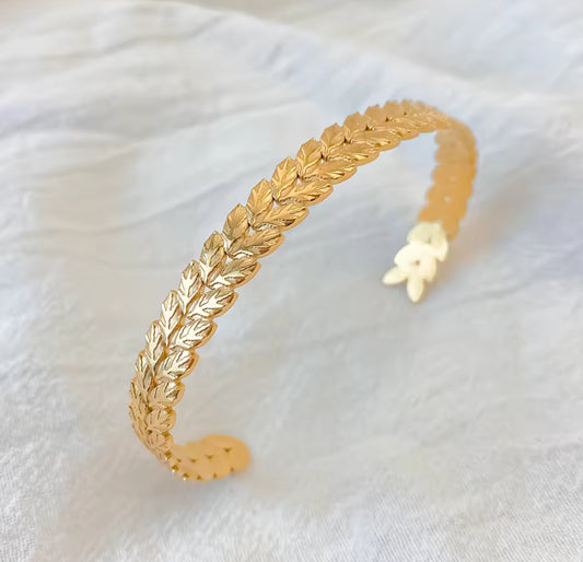 Gold-Plated Laurel Leaf Open Cuff Bangle Bracelet