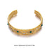 Crafted from a stainless steel base with a 14K gold PVD coating, this bangle is tarnish-free, waterproof, and hypoallergenic. It is also nickel and lead-free, ensuring safe and comfortable wear. The adjustable fit allows it to comfortably conform to your wrist, making it a versatile accessory for any occasion.