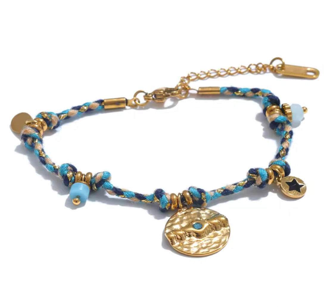 Add a pop of colour and playful charm to your accessory collection with these Colourful Rope Adjustable Charm Bracelets, available in three vibrant colour combinations – red, blue, and multicolour. Each bracelet is handcrafted with braided rope, adorned with gold-tone accents, beads, and unique charms for a boho-chic look that’s effortlessly stylish.