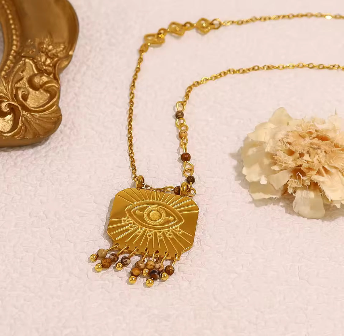Rectangular Evil Eye & Beaded Pendant Necklace